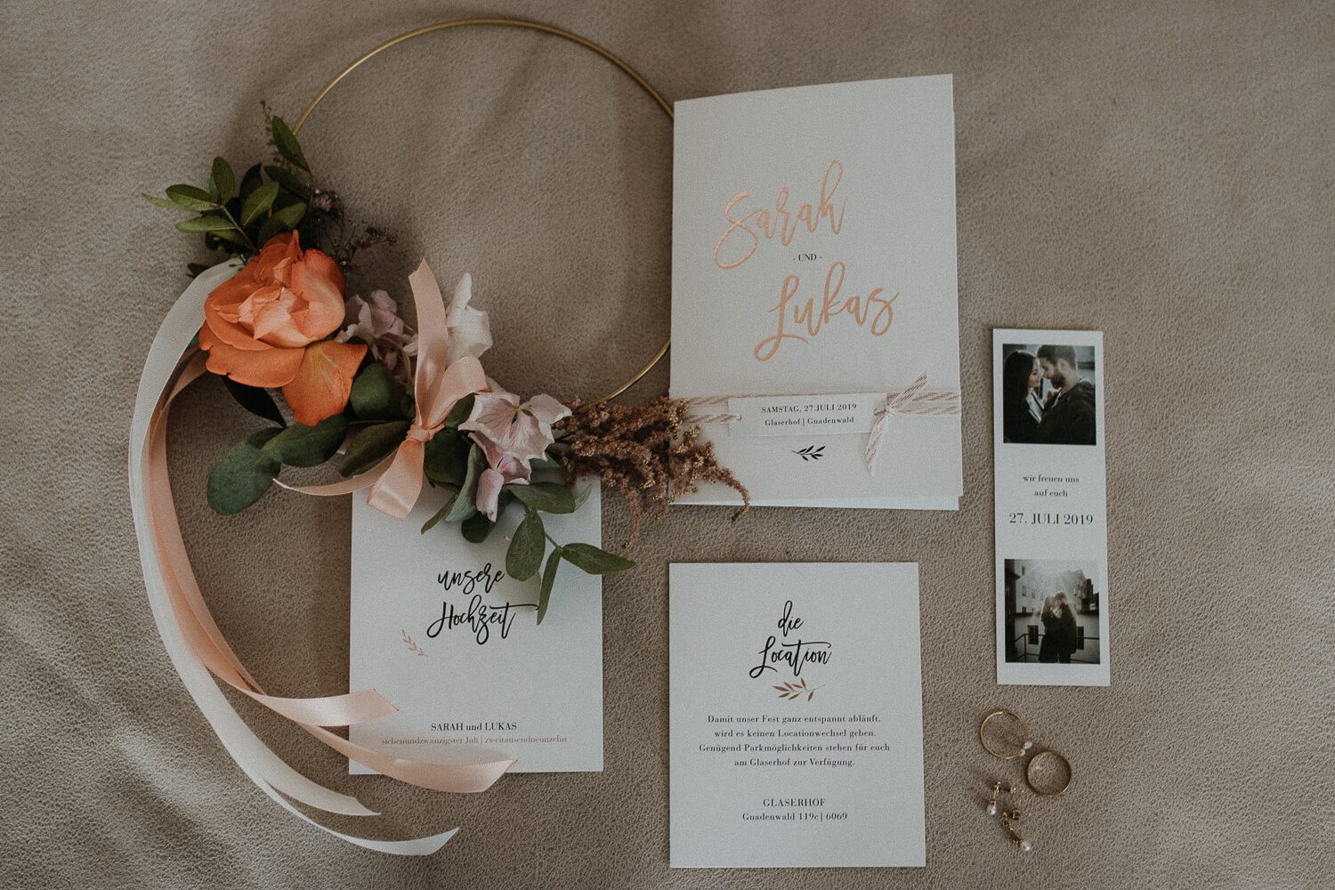 Als es dann zur freien Trauung am Glaserhof in Gnadenwald ging, stieg die Aufregung und Sarah konnte es kaum erwarten ihren Lukas zu sehen und endlich in die Arme zu schließen. Bei strahlendem Sonnenschein und romantischer musikalischer Umrahmung genossen das Brautpaar und die Gäste diese detailverliebte, sehr emotionale Trauung mit ihren Familien und Freunden. Die persönlichen Eheversprechen der beiden ließen kein Auge trocken.